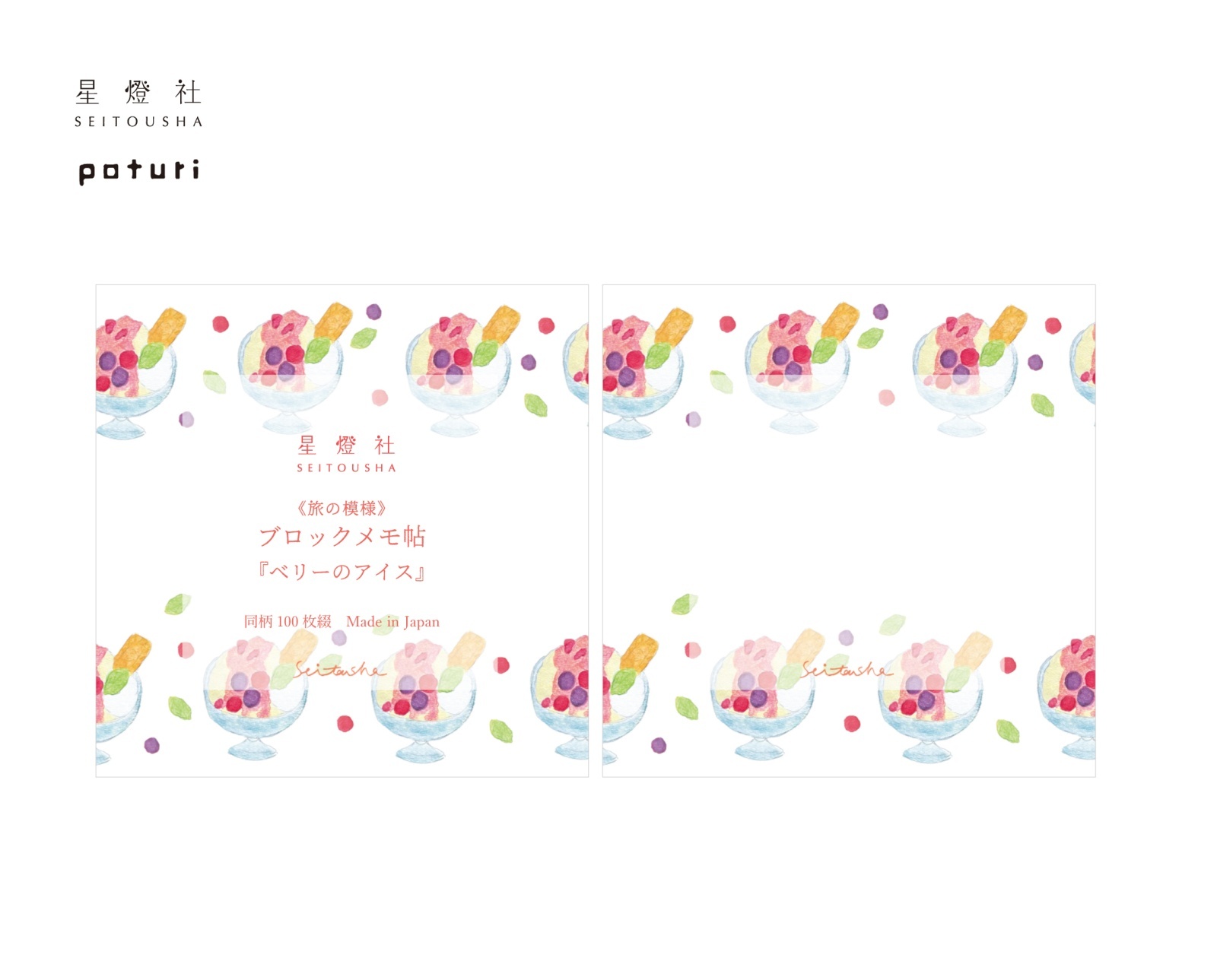 2025年10月新作〔400円×5個〕ブロックメモ帖 旅の模様『ベリーのアイス』/同柄100枚綴り